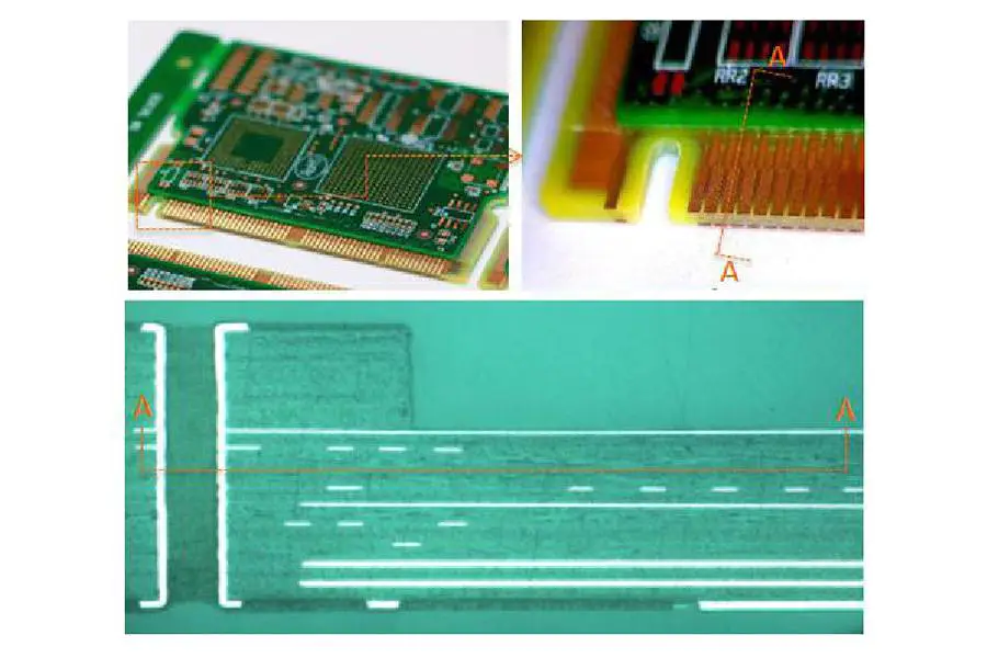 When the gold finger circuit board needs to increase the board thickness to achieve multi-functional requirements, the matching plug-in interface equipment needs to be completely transformed, which is a waste of resources and costs. The cavity gold finger design solves this problem very well. Through the way of inner layer gold finger plated, sticking high-temperature tape, adding pp gasket and control-deep milling after lamination, the gold finger can be led out from the inner layer to achieve functional requirements.